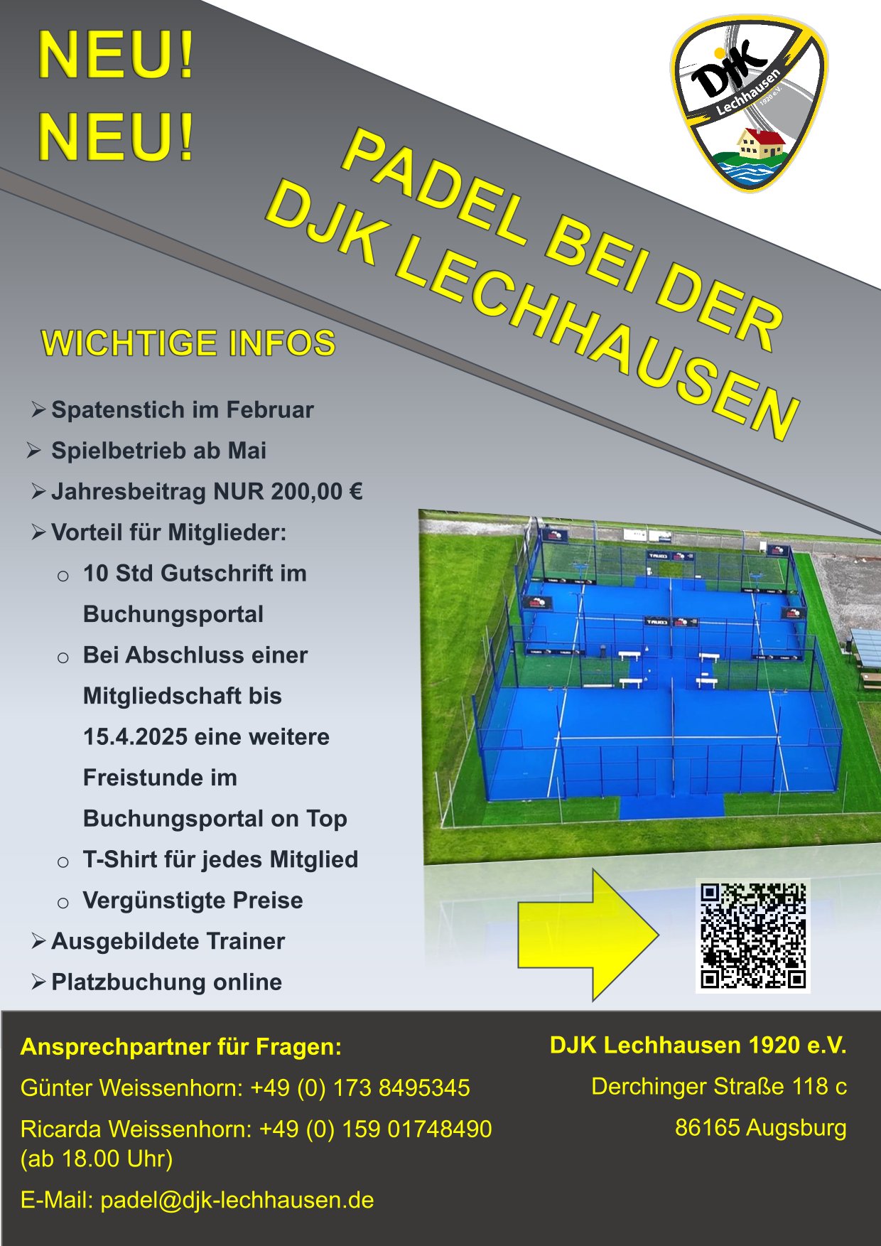 endlich - nach langer Planung ist es soweit - die neue Abteilung Padel der DJK Lechhausen geht an den Start!