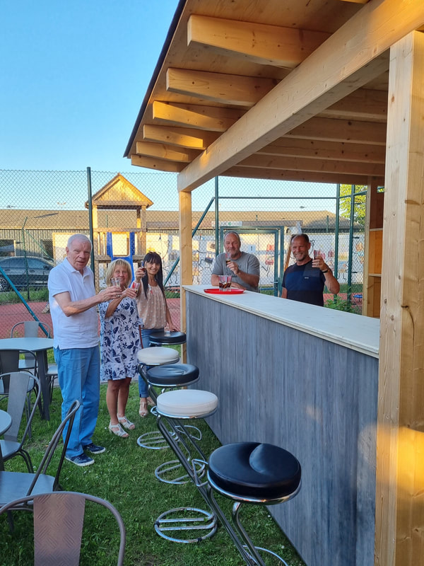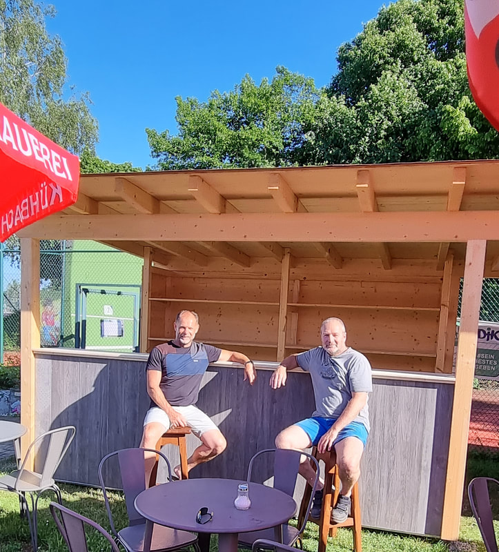 Unsere Mitglieder waren wieder fleißig und jetzt haben auch die Tennistaschen eine Garage und stehen nicht mehr im Biergarten rum. Gleichzeitig haben wir vor dem Regal eine Bar installiert, die selbstverständlich auch gleich eingeweiht wurde.