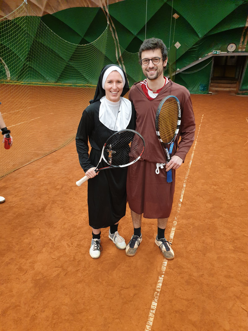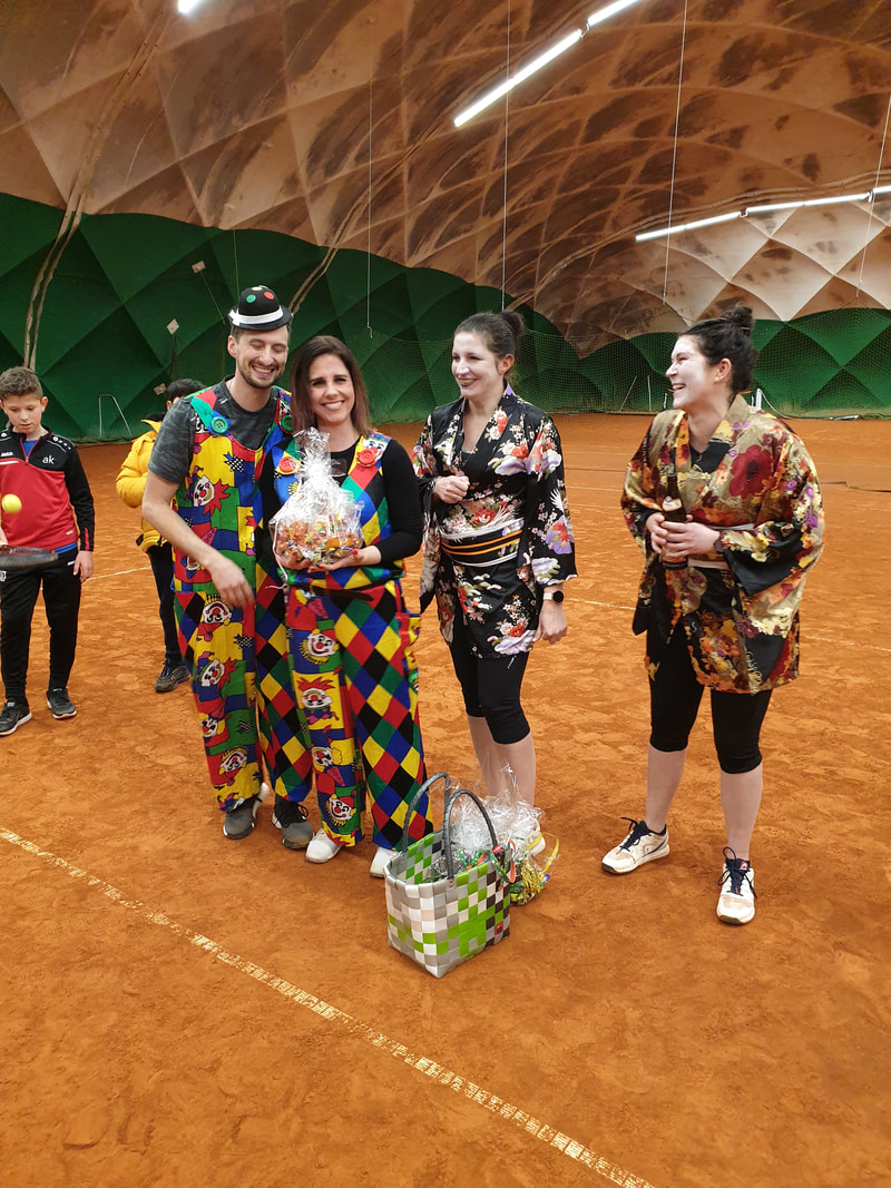 Kätzchen, Mäuschen, Froschkönig, Clown's, Babys, Bienchen, Blümchen, Rockerlady, Geisha's, Klosterschwester, Mönch, Marienkäfer, ...…. Kunterbunt gings zu in unserer Tennishalle beim Faschingstennis. Allein schon die Kostüme waren es wert, dass man auf einen Sprung vorbeischaut und die Teilnehmer hatten definitiv ihren Spaß! Marion und Evelyn haben dann auch noch die schönsten Kostüme prämiert - herzlichen Dank :-) Wir freuen uns schon aufs nächste Jahr und sind gespannt, was sich die Spieler einfallen lassen!