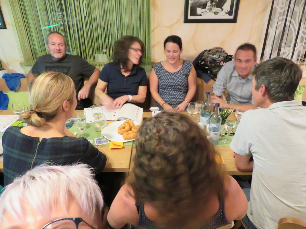 Kulinarisch verwöhnt wurden wir von unserer Franca, das Buffet ließ keinerlei Wünsche offen! Von Vitello Tonnato über Panzerotti, Schinken, Mortadella Käse und Bruschetta. Alles schmeckte wie immer – einfach nur lecker!