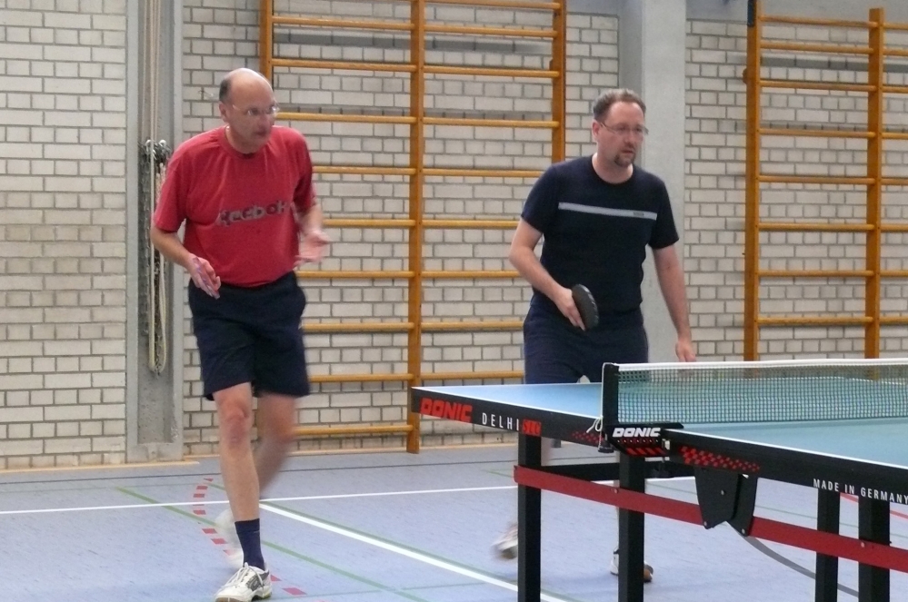 Jedes Team spielte gegen die vier anderen, so dass sich insgesamt 20 Begegnungen ergaben, die auf drei Platten ausgespielt wurden. Von der „Papierform" her sollten Reinhold und Michael S. und auch Stefan und Harro gute Gewinnchancen haben, aber einen eigentlichen Hauptfavoriten gab es eher nicht, denn Doppel-Vereinsmeisterschaften haben erfahrungsgemäß ihre eigenen Gesetze, wobei auch das (Los-) Glück eine große Rolle spielt.